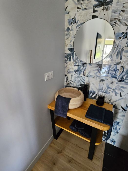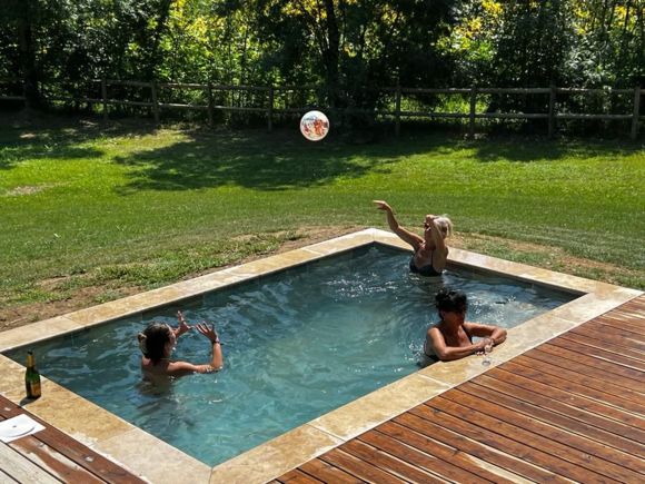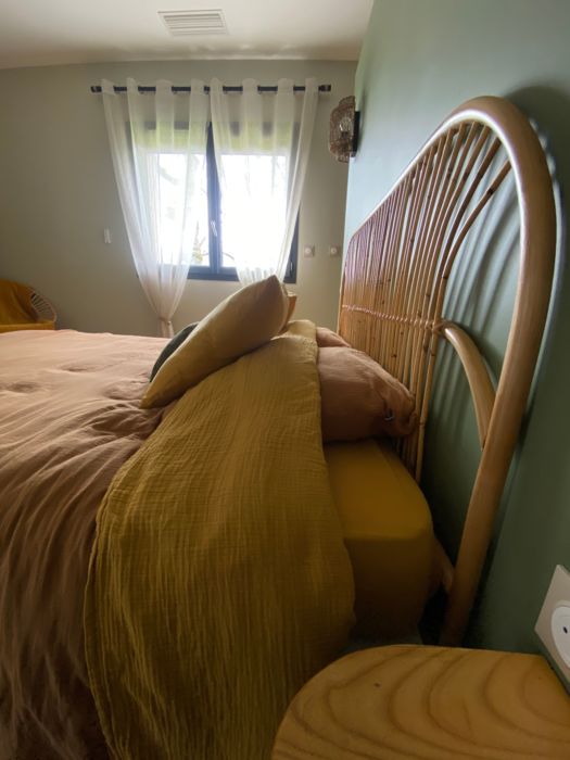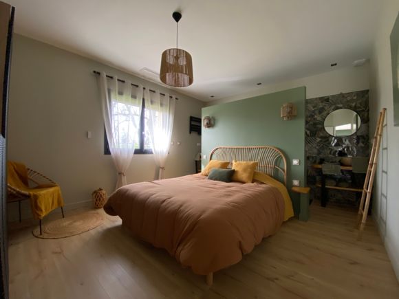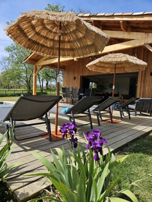 Entirely on the ground floor, a large living room with sitting area (2 sofas, TV), kitchen area (fitted kitchen with American-style fridge, hob with integrated hood, oven, microwave, dishwasher), storeroom (washing machine/dryer), separate toilet with washbasin. 2 bedrooms, each with 1 x 160cm bed, private shower room with walk-in shower and twin basins. Fully air-conditioned. Wifi free of charge. Large fenced garden. Private swimming pool, 2.5 x 4 m, 1.20 m deep, heated from April to October (weather permitting). Bed linen and towels included in the price. Beds made up on arrival.