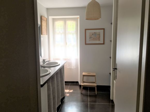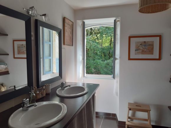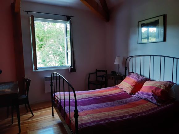 Ground floor: a room (25 m2) where the millstones once worked serves as a spacious entrance hall, with a wc and cloakroom, leading to a living room (32 m2) with a vast kitchen area (fitted units (dishwasher, hob, oven, fridge, freezer, microwave), a storeroom (LL, SL). First floor: lounge (sofa, armchair, TV, DVD player, small school desk), 1 bedroom (1×160), 1 bedroom (1×140), 1 bedroom (2×90), bathroom, separate WC. Terrace (40 m2) with 2 sets of garden furniture, barbecue, deckchairs. Unenclosed private grounds (900 m2). Baby equipment on request: cot, high chair, bath. Price includes: heating, electricity, tourist tax. Optional: hire of sheets, household and bathroom linen, cleaning. No wifi.