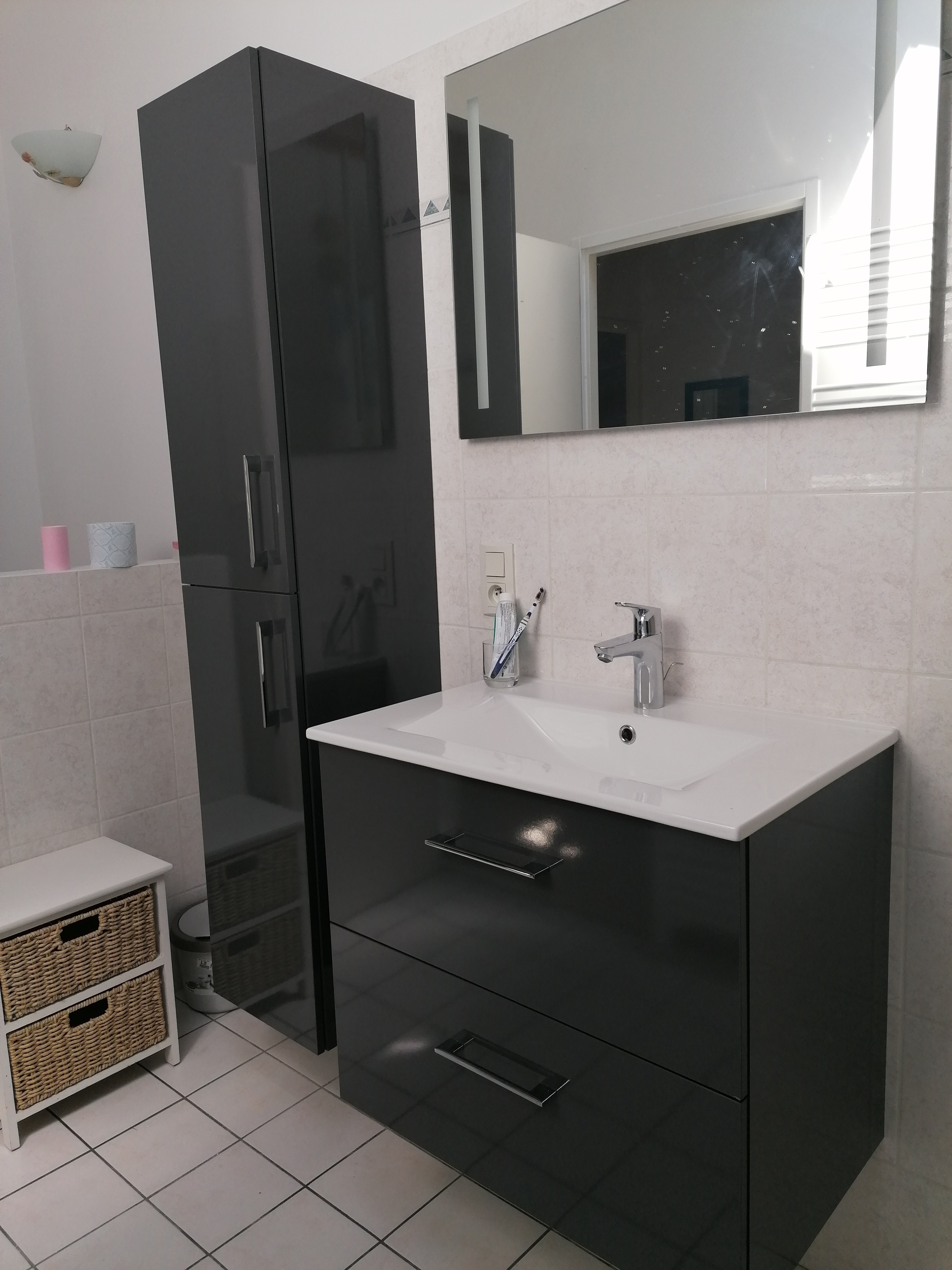 Au RdC : salon/SàM (canapé+2 fauteuils, TV écran plat et home cinéma, vidéothèque, chaine hi-fi, bibliothèque avec large choix de livres pour vous évader) ; cuisine (plaque vitro, four+micro-ondes, lave-vaisselle) ; buanderie (lave-linge) ; salle d’eau (douche) ; WC séparés
