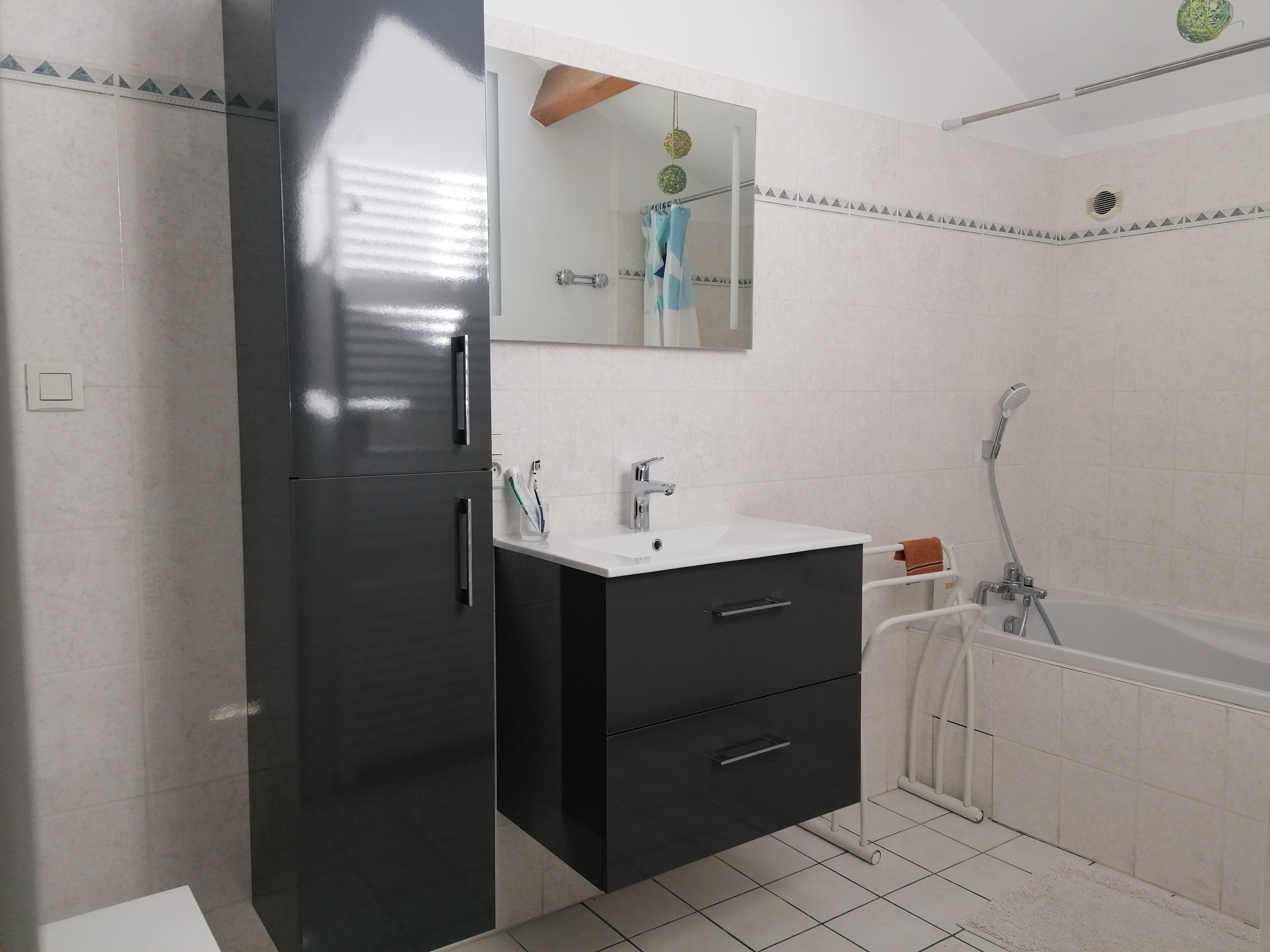 A l’Etg : 2 ch lit 140 ; 1 ch 2 lits 90+2 lits BB, jeux de société ; SdB (baignoire)+WC