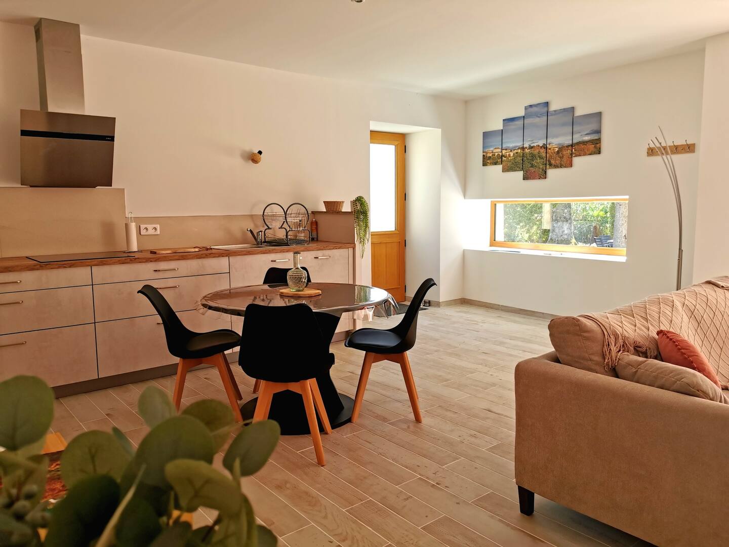 Martine et ses enfants ont pensé le gîte en ce sens : un bel espace jardin avec du mobilier pour la vos repas au grand air, et côté intérieur, un salon cosy devant le poêle à bois, une cuisine équipée pour vous concocter de bons petits plats, deux jolies chambres et une salle d’eau avec WC indépendant.