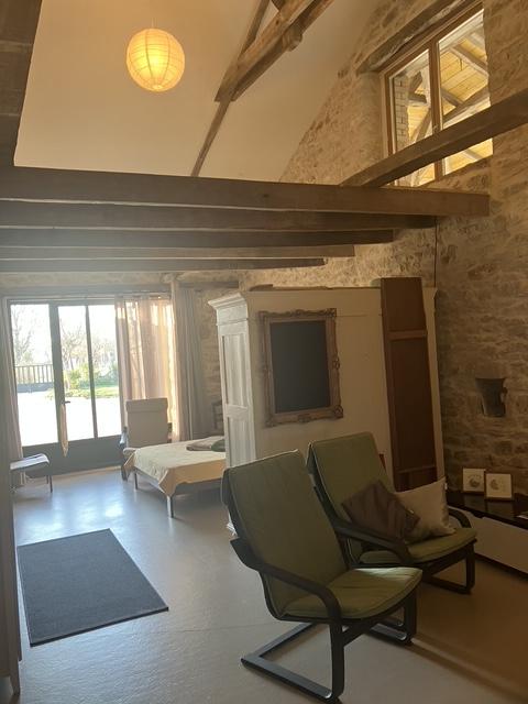 Chambre d’hôtes indépendante de 60 m² dans une grange rénovée, au calme de la campagne. Studio en rez-de-chaussée avec terrasse privative couverte. Petit-déjeuner sur place. Situation idéale pour balades et découverte des villages voisins.
