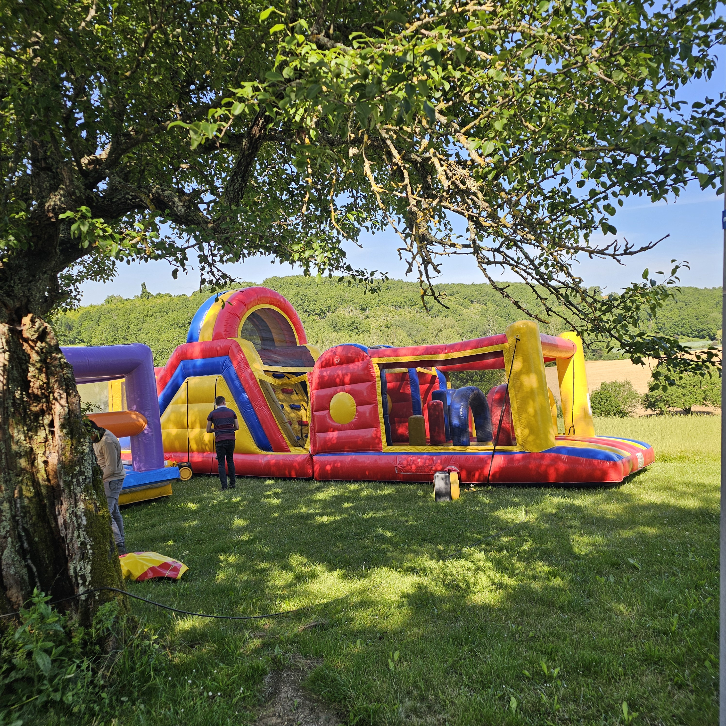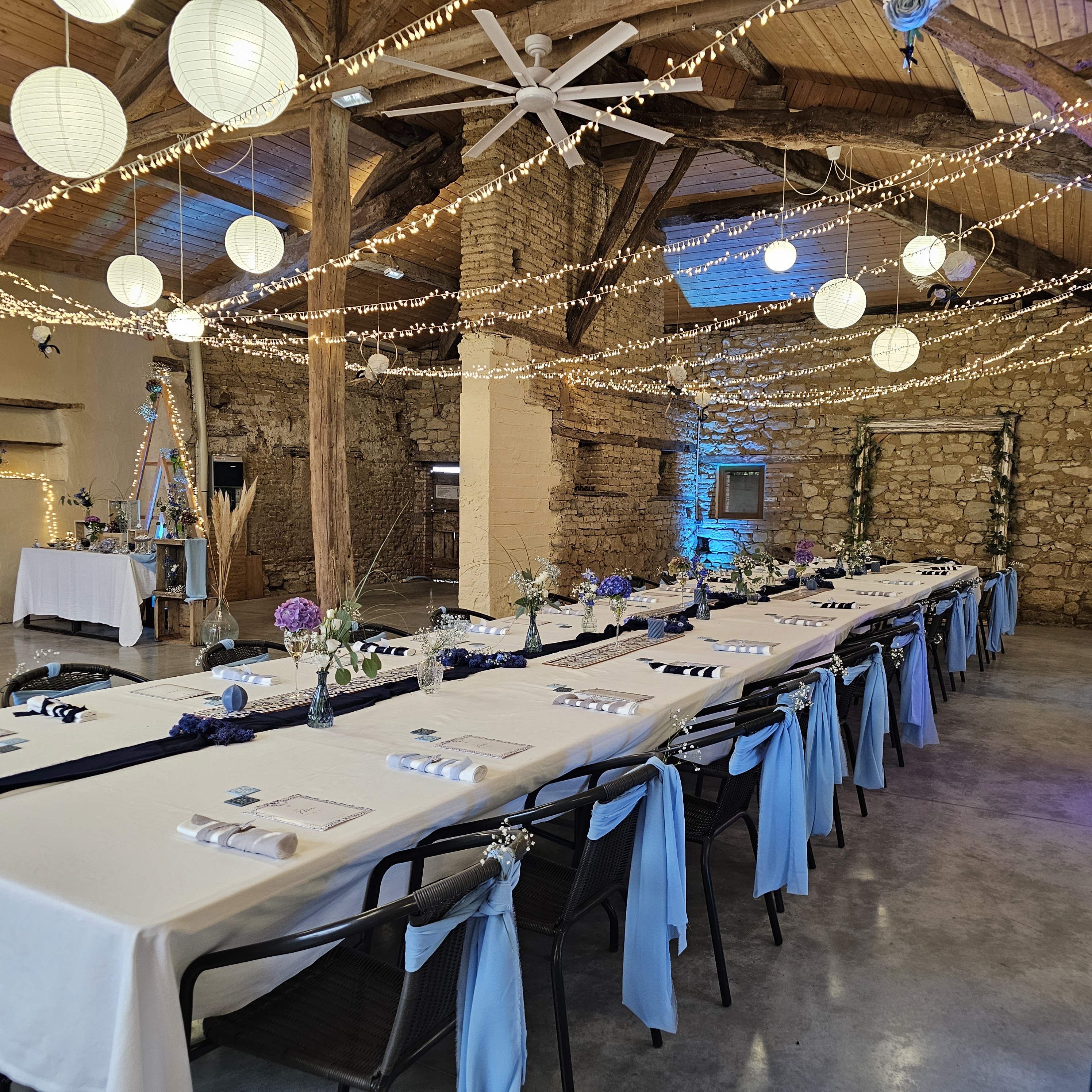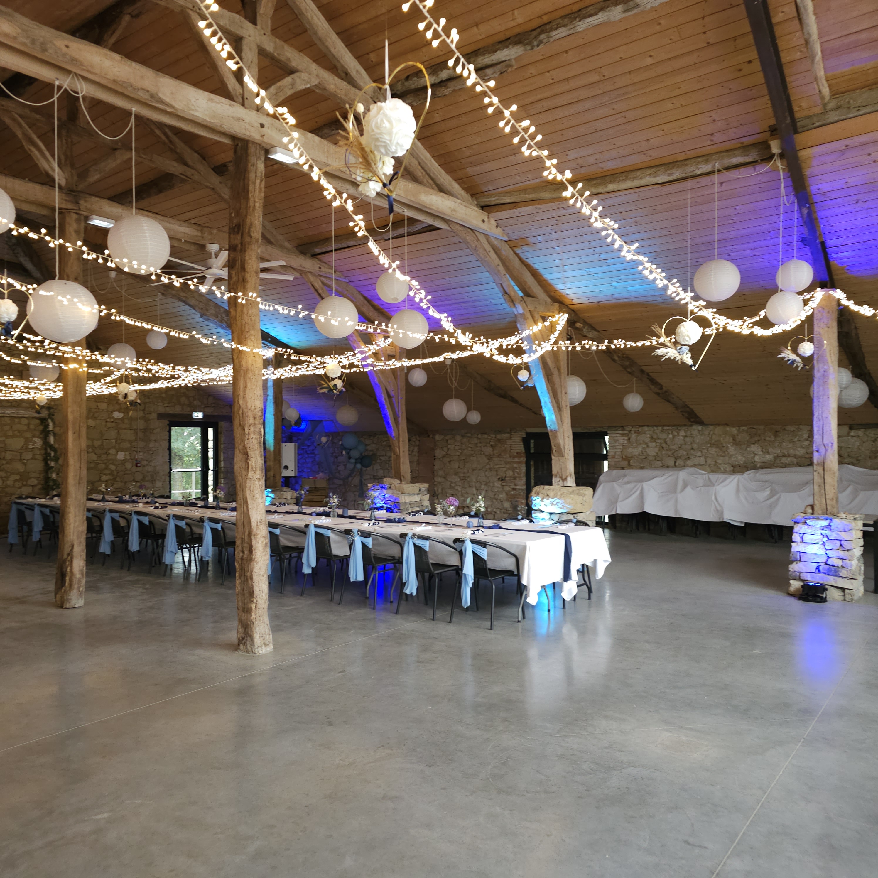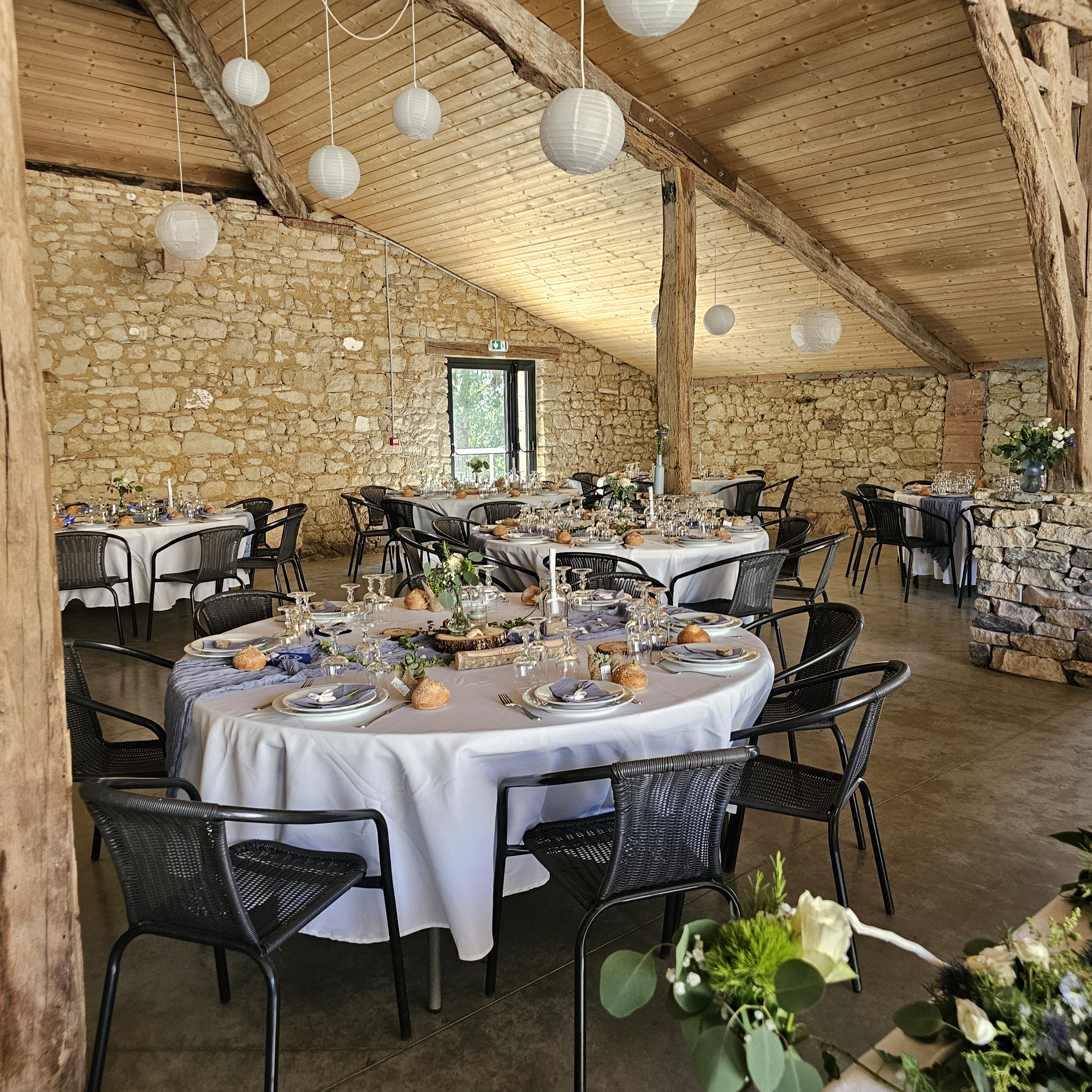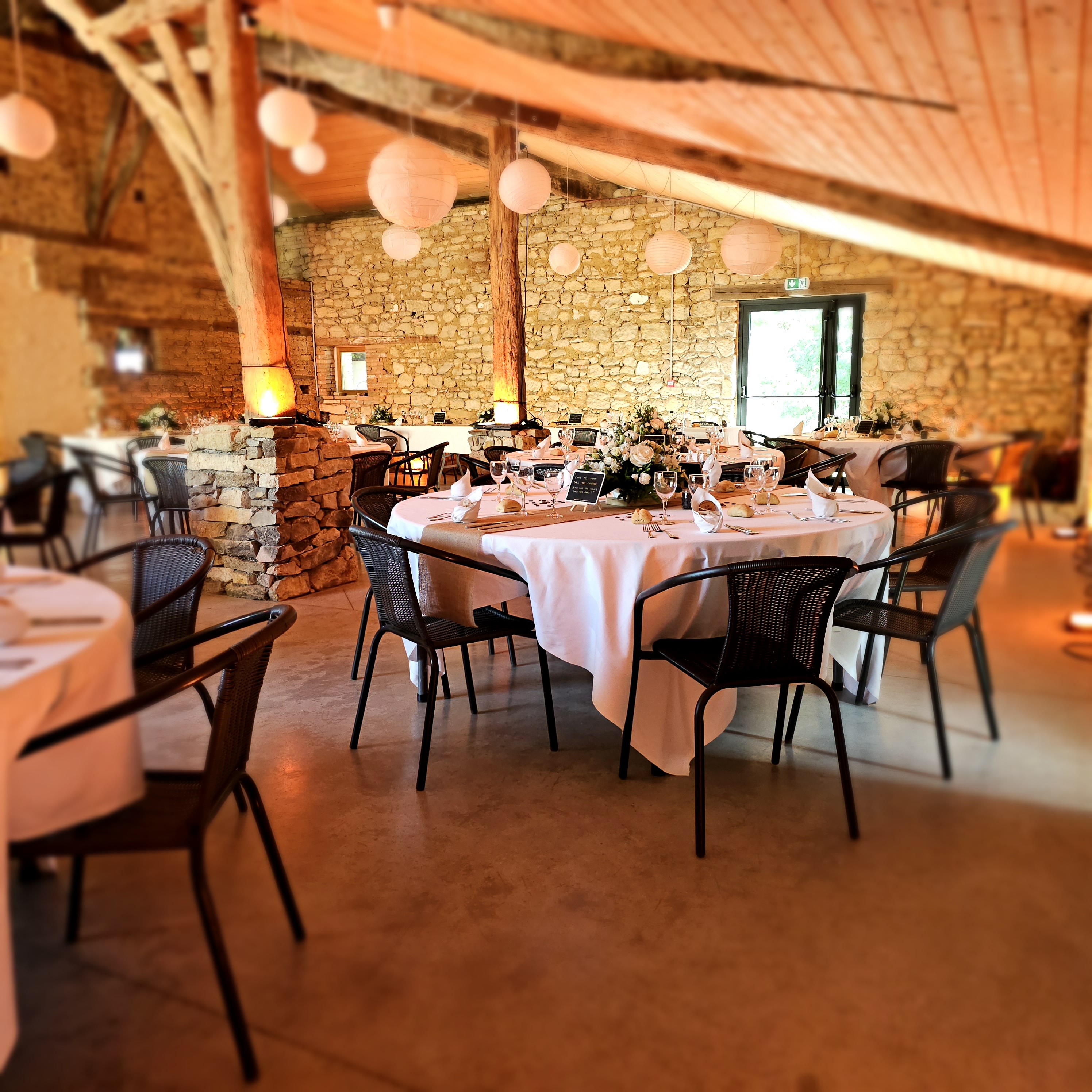 Au cœur du domaine, une salle de réception de caractère, installée dans un bâtiment en pierre, offre un cadre authentique et élégant pour mariages, anniversaires, cousinades ou événements professionnels. Les vastes extérieurs ouverts sur la campagne environnante invitent à la détente, aux repas en plein air et aux moments de contemplation.