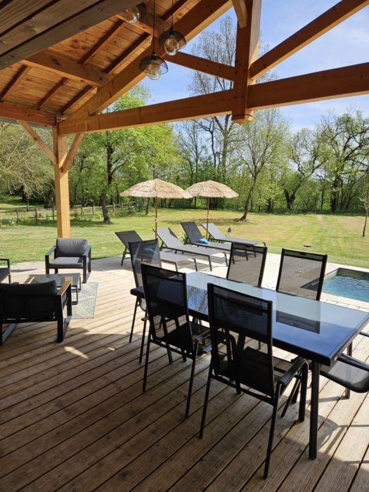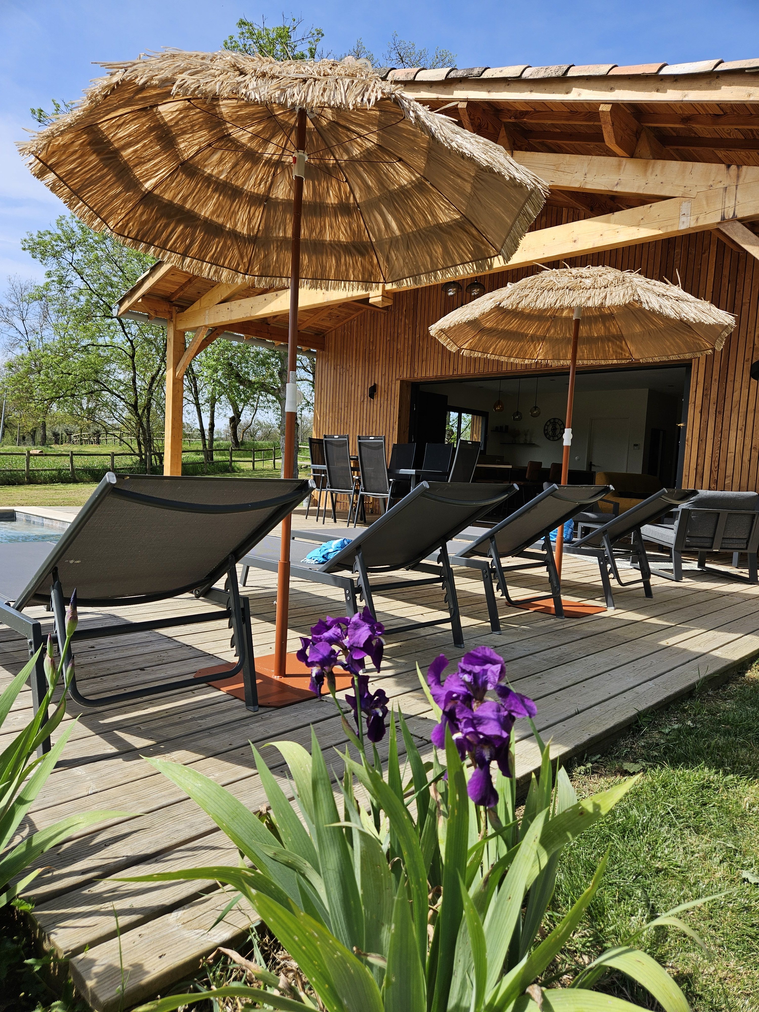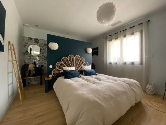 Entièrement au rez-de-chaussée, une grande pièce à vivre avec espace salon (2 canapés, TV), un espace cuisine (cuisine de type intégrée avec frigo américain, plaque avec hotte intégrée, four, micro-ondes, lave-vaisselle), un cellier (lave-linge sèche-linge), un wc indépendants avec lave-main. 2 chambres avec 1 lit 160 chacune, salle d’eau privative avec douche à l’italienne et deux vasques. Logement entièrement climatisé. Wifi gratuit. Grand terrain clôturé. Piscine privée 2.5 x 4 m profondeur : 1.20 m, chauffée de avril à octobre (selon la météo). Linge de lit de toilette et de maison fournis compris dans le prix. Lits faits à l’arrivée.