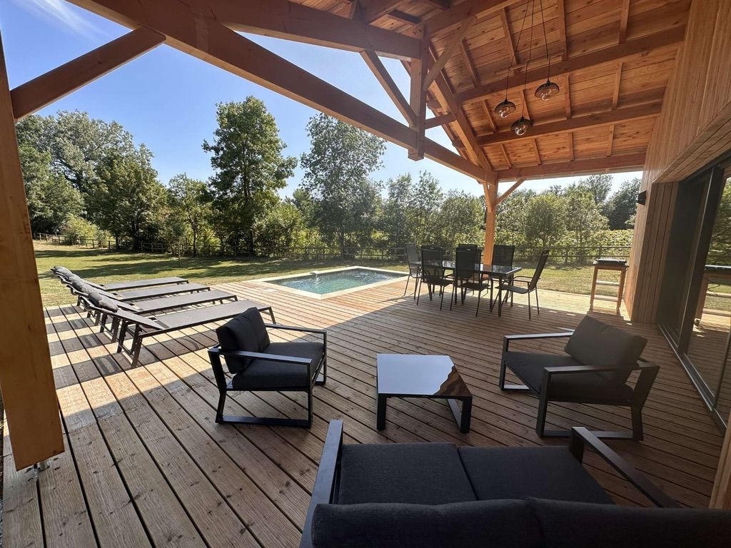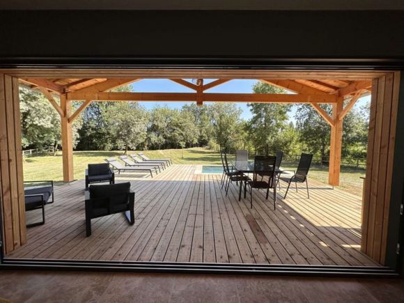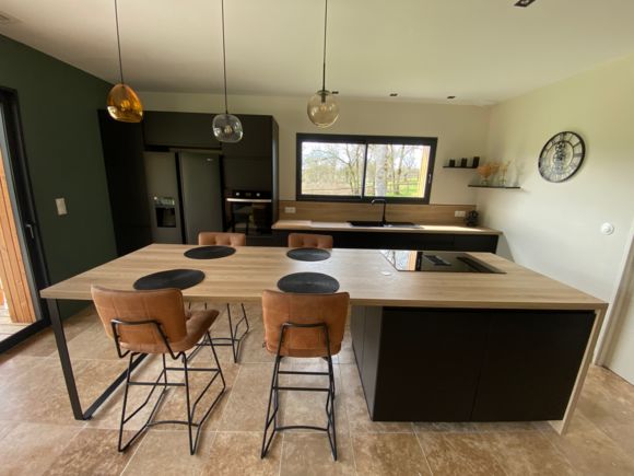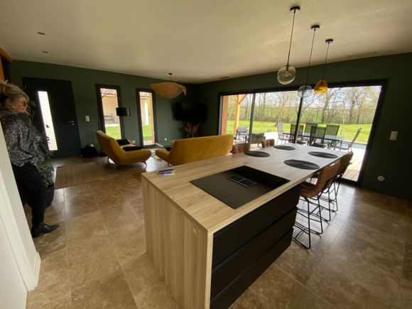 A quelques mètres d’un petit ruisseau serpentant la campagne « le Candé », alors distancié par un joli pré arboré, découvrez cette maison de bois, aux lignes épurées, révélant par sa grande baie à galandage un intérieur tout en charme et élégance.