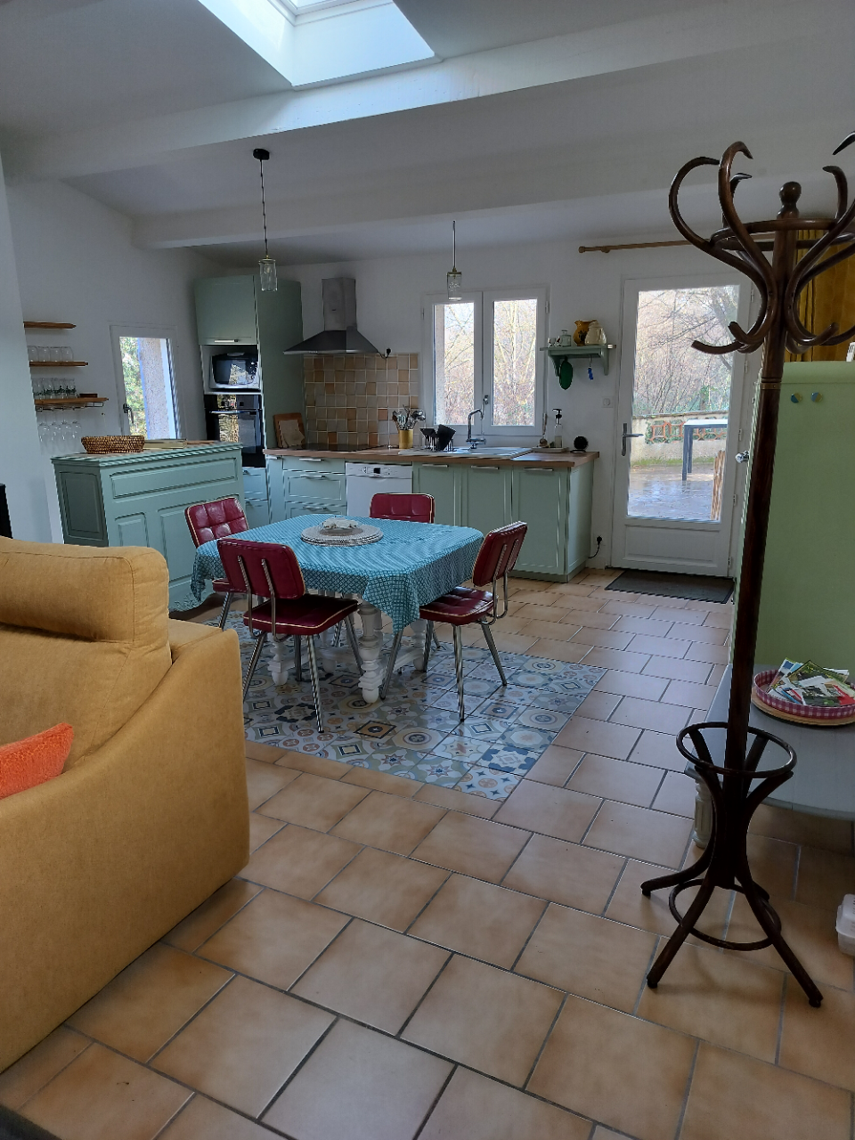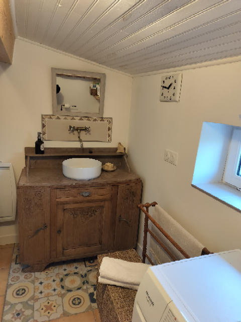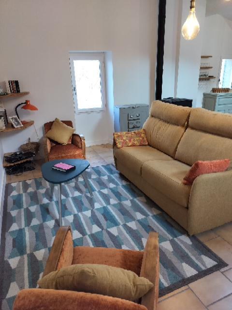 Le gite est composé d’un grand séjour auquel est adjoint un coin cuisine confortable. Vous y trouverez tout le nécessaire pour les repas. Le coin salon accueille un canapé et des fauteuils devant une télévision grand écran (box, wifi à dispo). La chambre est équipée d’un lit de 160×200 et derrière une alcôve, un lit de 90×190 (3 couchages) la salle de bain est attenante avec une grande douche (machine à laver, toilettes) il y a à l’extérieur 2 terrasses dont une avec une table et chaises pour des repas extérieurs.