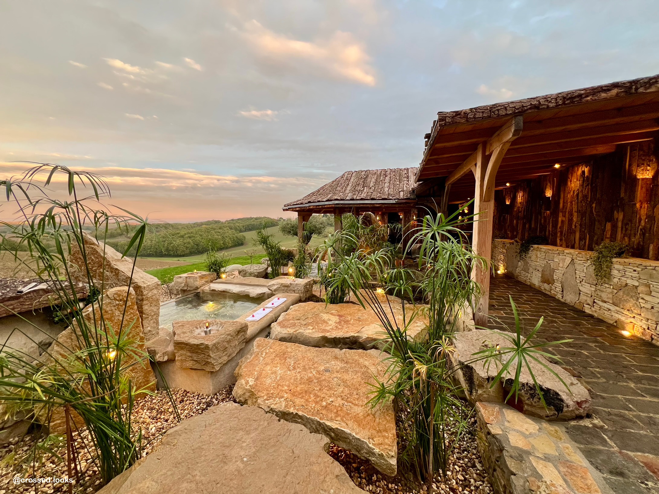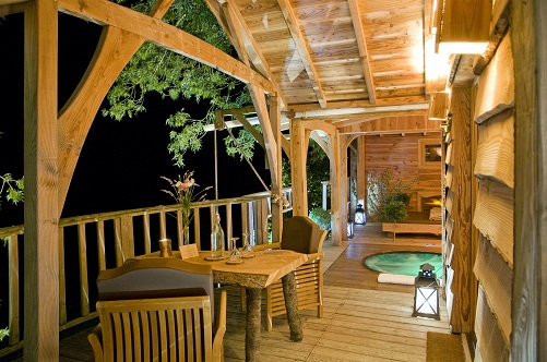 Vivre un moment d’émotion inoubliable dans un endroit unique et romantique dans une Cabane avec spa, sauna, bain romain en pierre naturelle, hammam, crique de sable, miroir d’eau, un véritable espace bien être entièrement privatif pour deux.