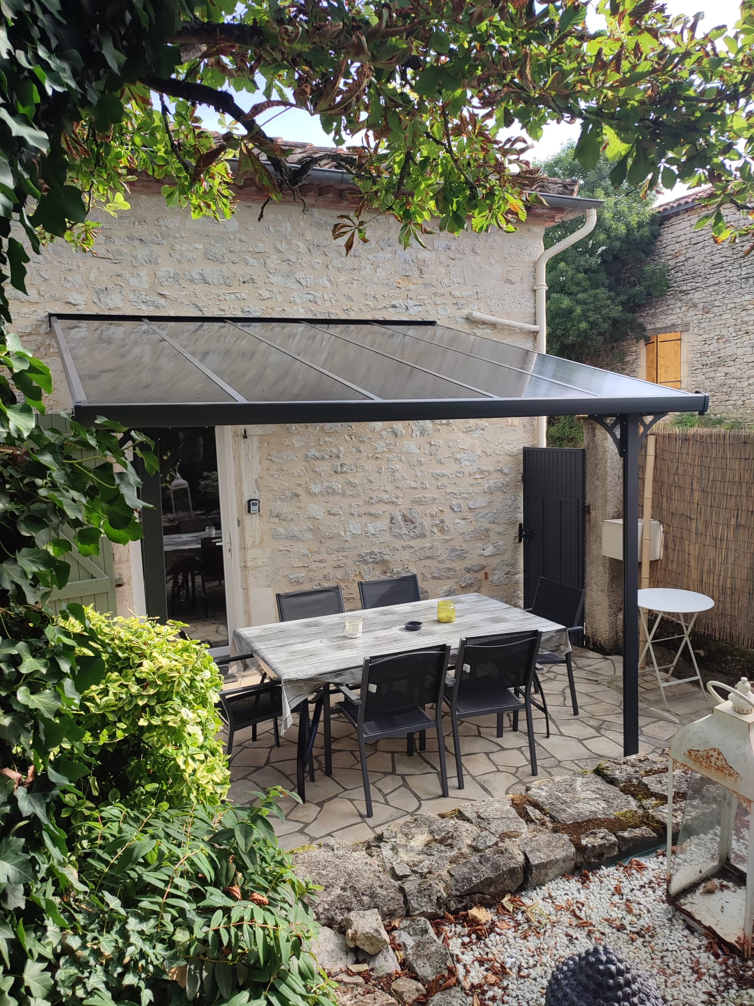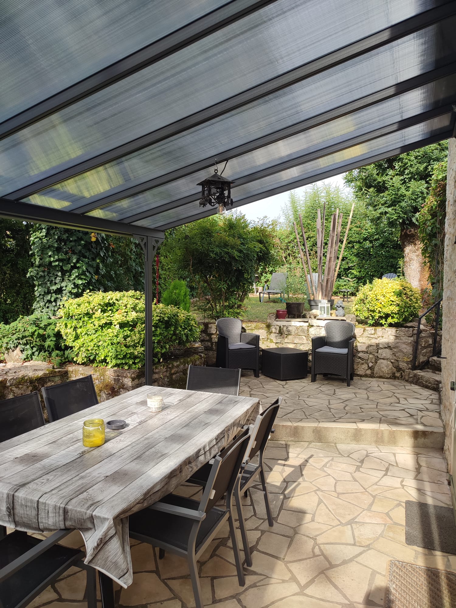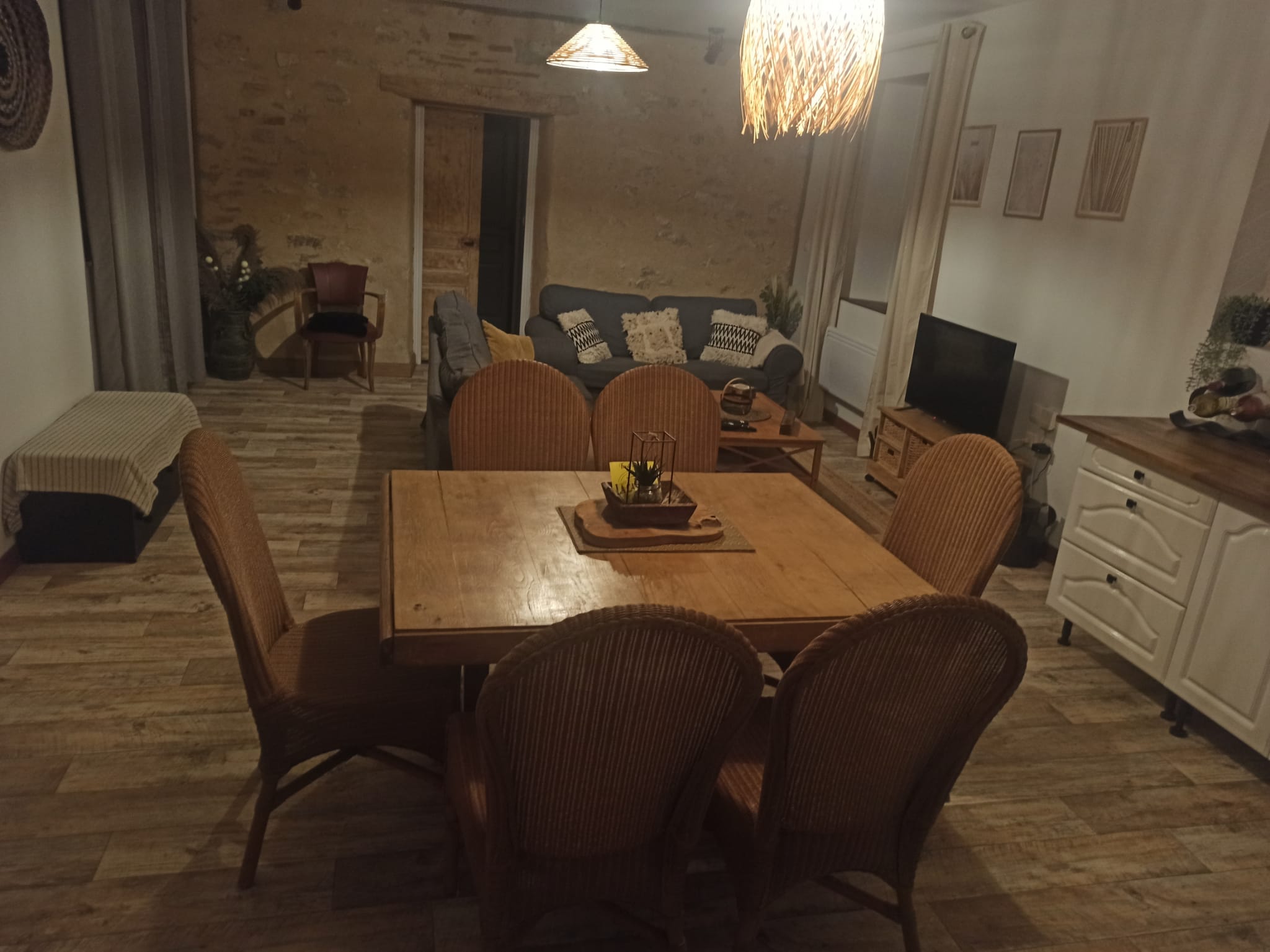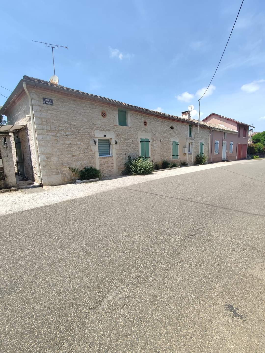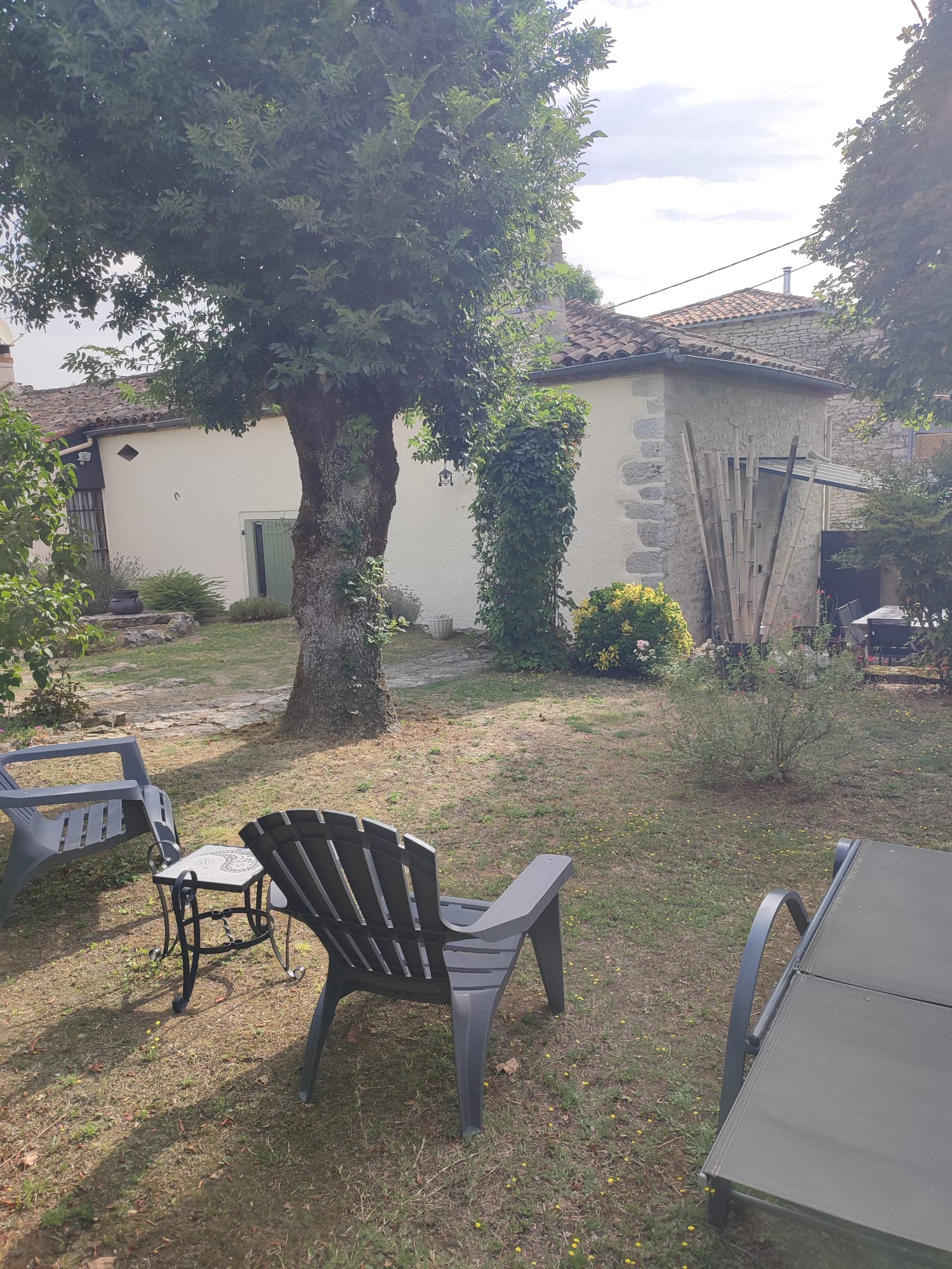 Maison en pierres de plain pied (3 marches pour accéder à la salle de bain et WC) avec jardin clôturé et terrasse.