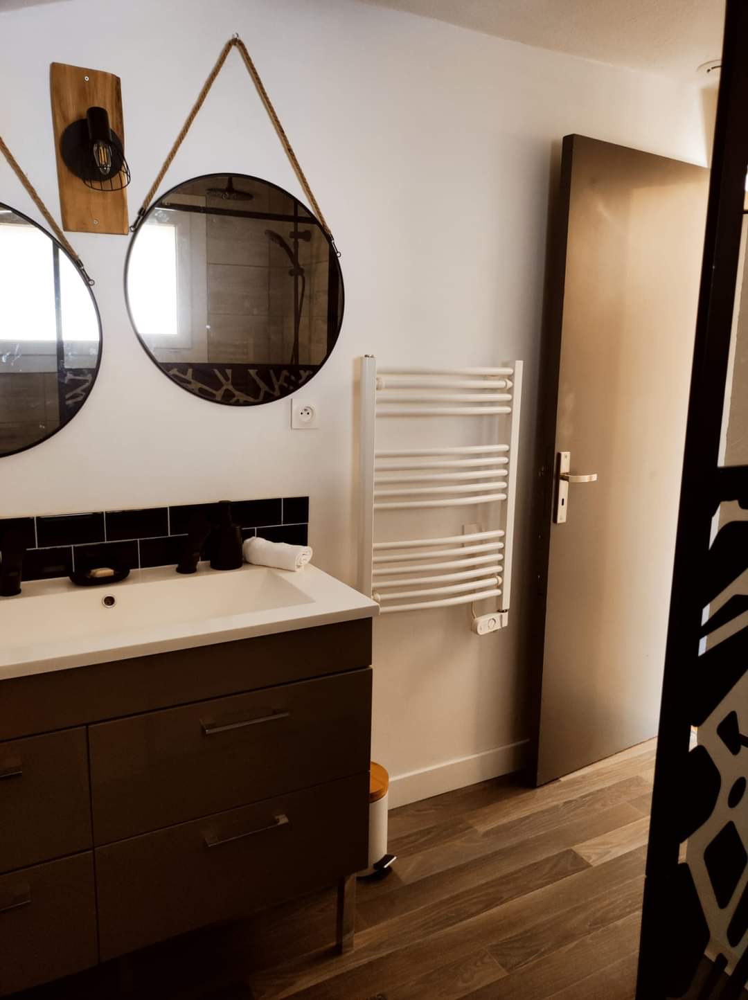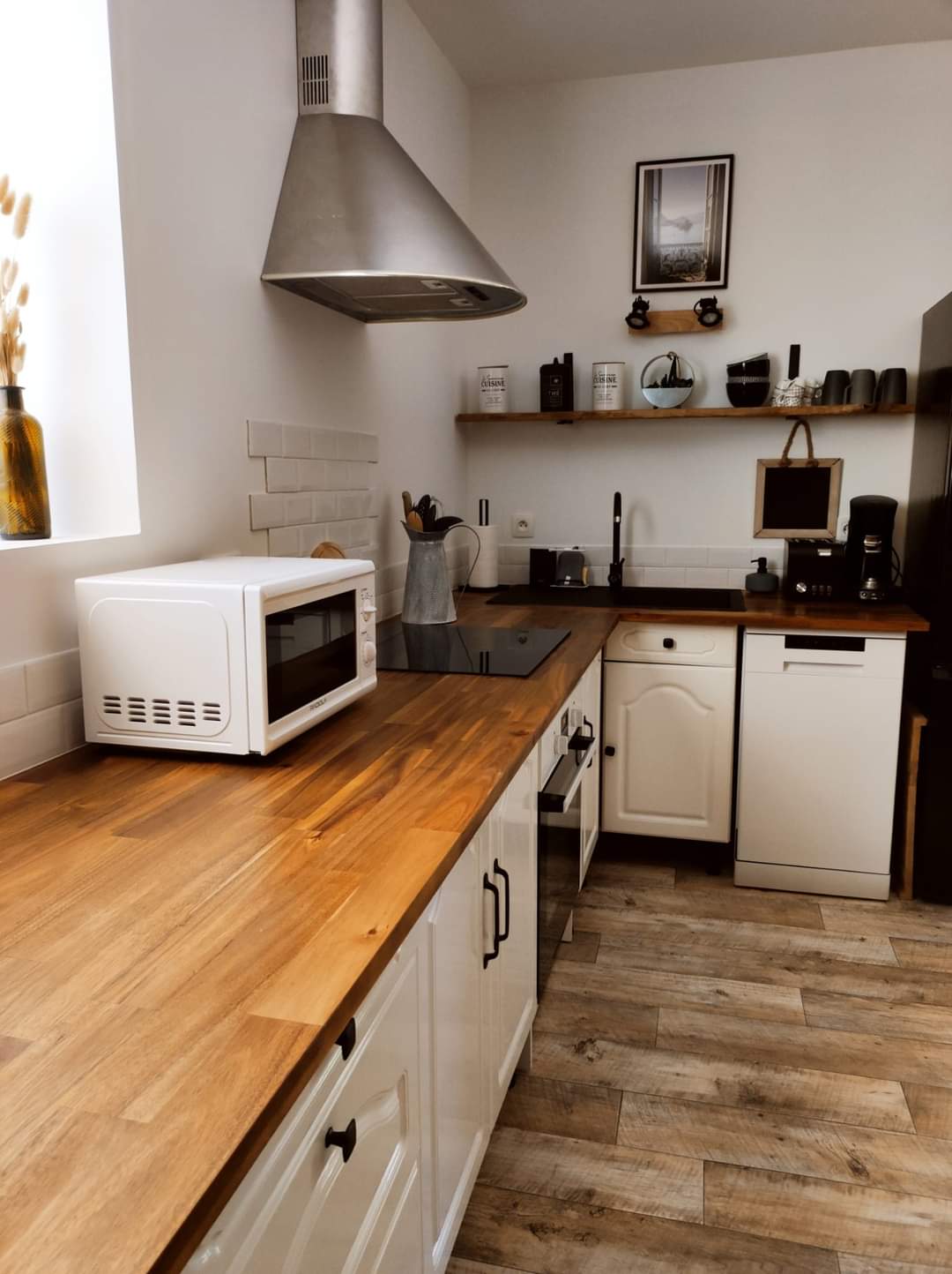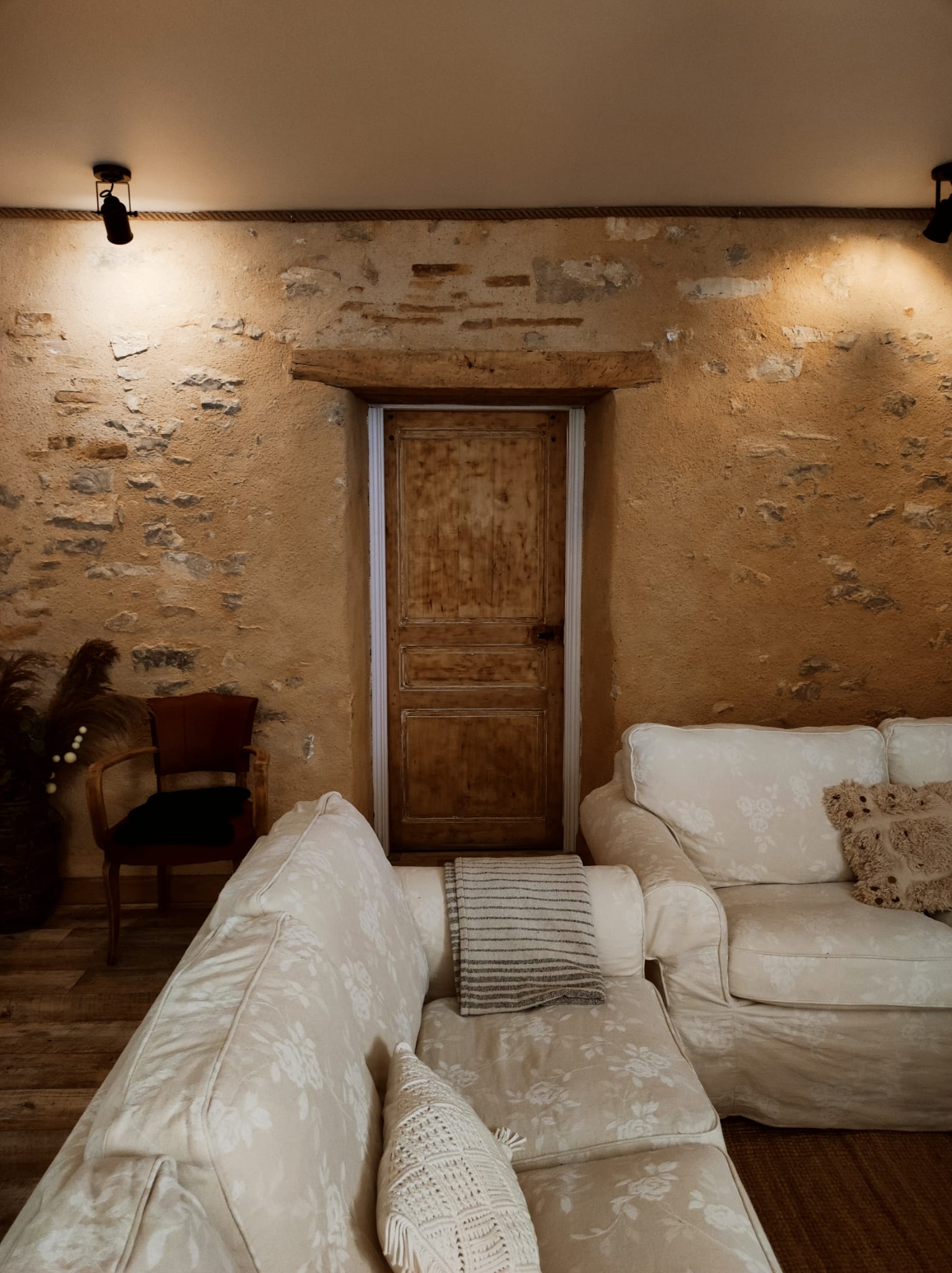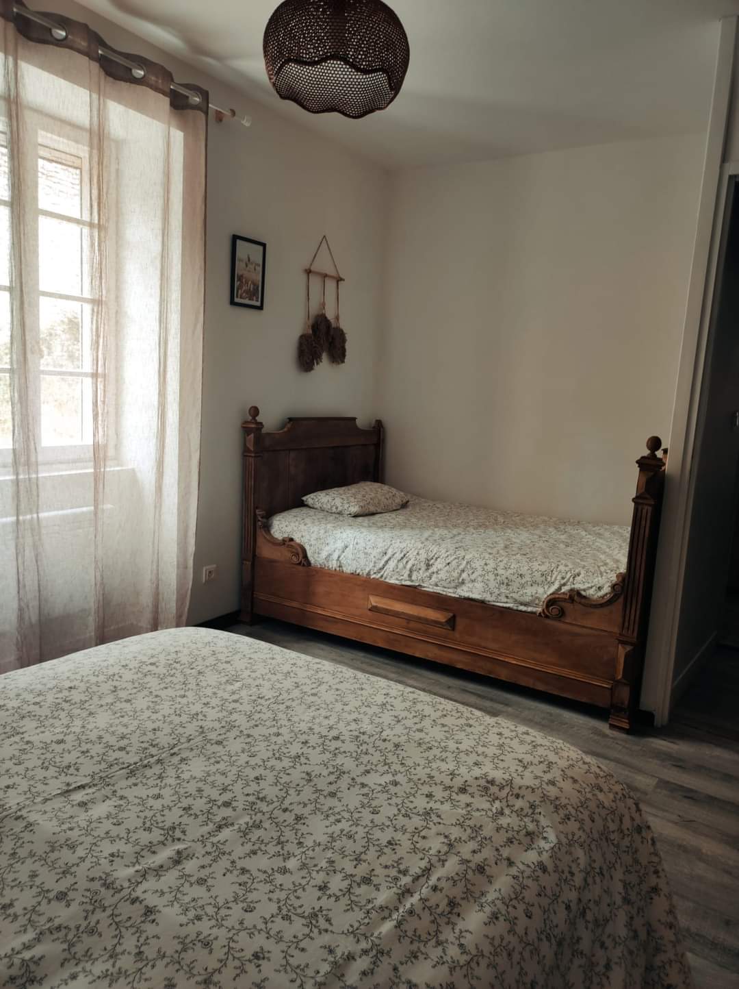 Maison en pierres de plain pied (3 marches pour accéder à la salle de bain et WC) avec jardin clôturé et terrasse.