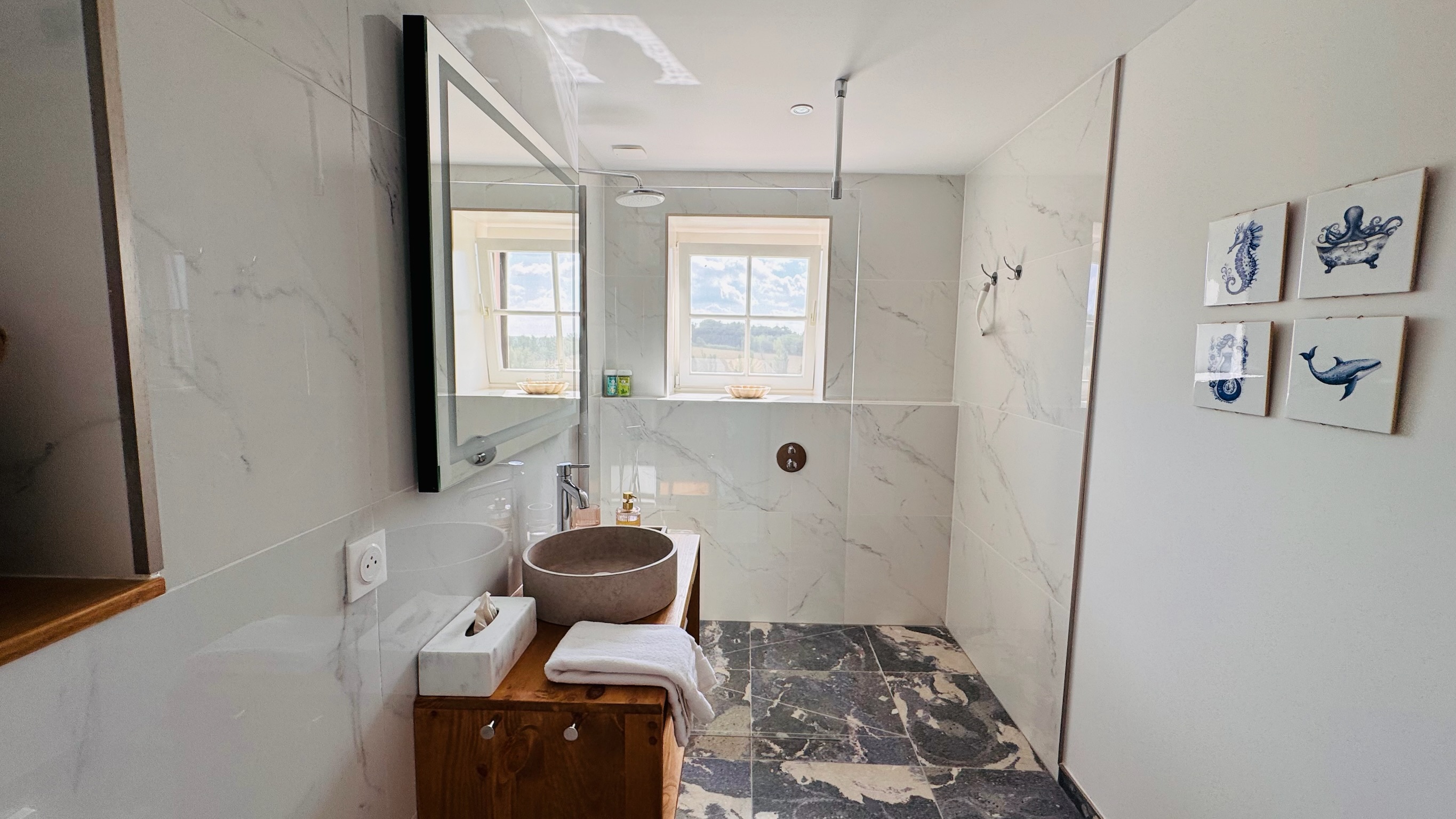 This single-level home features 3 elegant bedrooms, each with its own en-suite bathroom, ensuring maximum comfort and privacy. The spacious living room and fully equipped kitchen invite you to relax or enjoy meals together, with everything from a coffee maker to barbecue utensils provided. You’ll find all the essentials—towels, bed sheets, and extra pillows—ready for you. And all bathrooms are stored with Marie-Stella-Maris products for your ultimate experience.