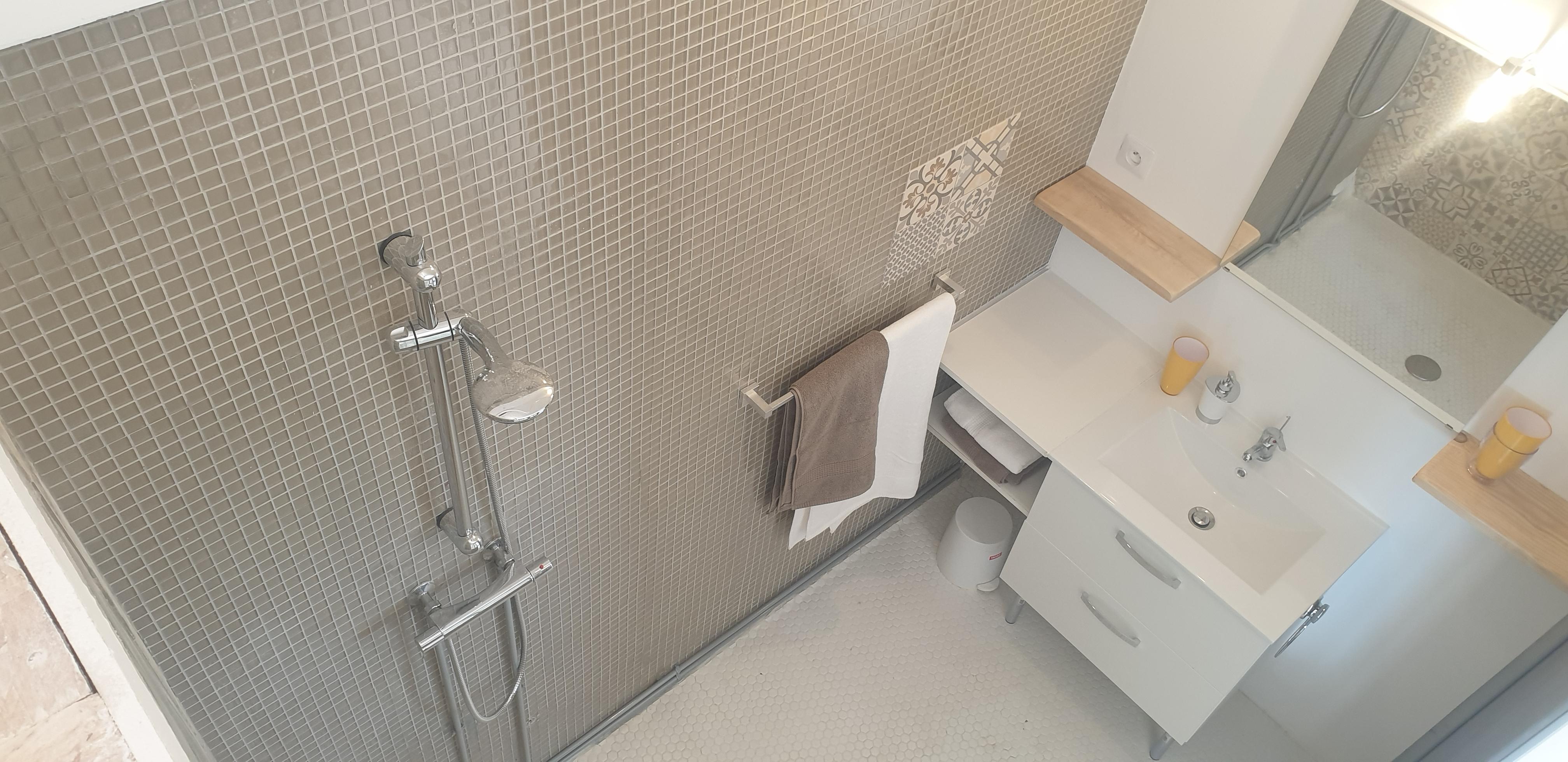 -une salle d eau avec douche à l italienne spacieuse et lavabo.