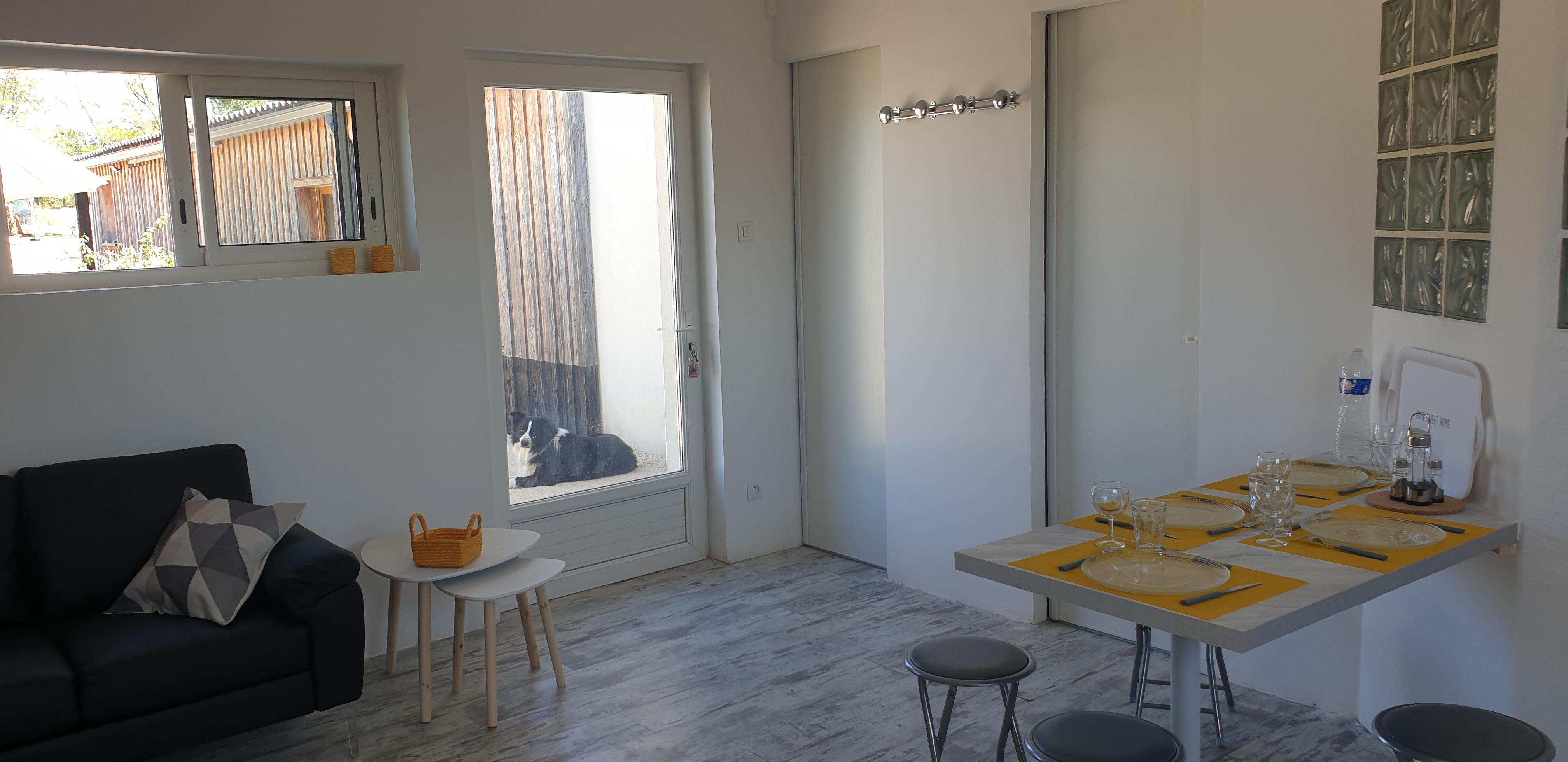 – une pièce de vie attenante à la cuisine avec un canapé 3 places,table basse relevable,table à manger 4 personnes,