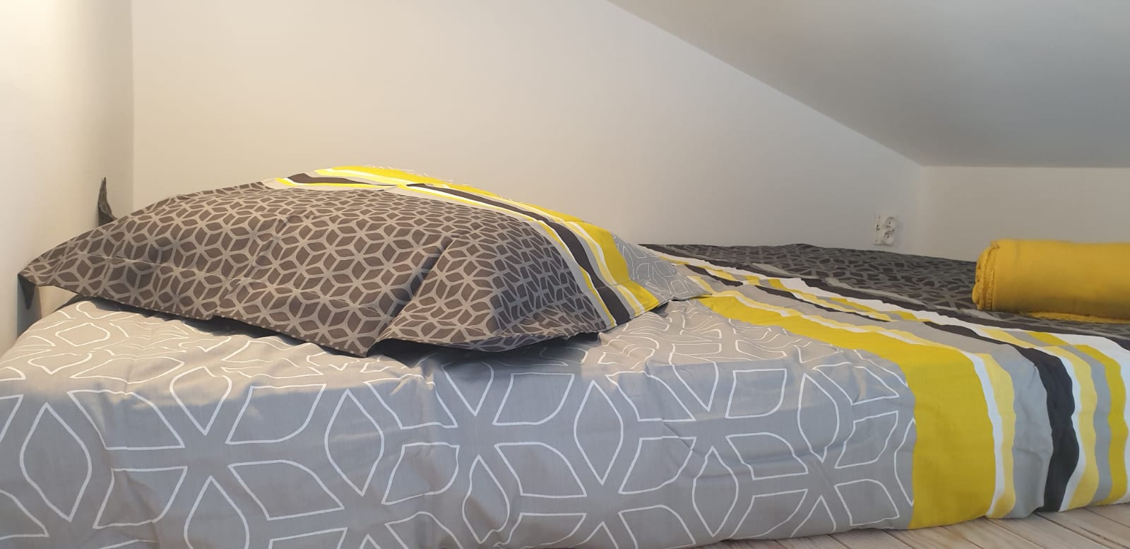 – une chambre indépendante de 9m2 avec lit de 140x190cm avec draps fournis.