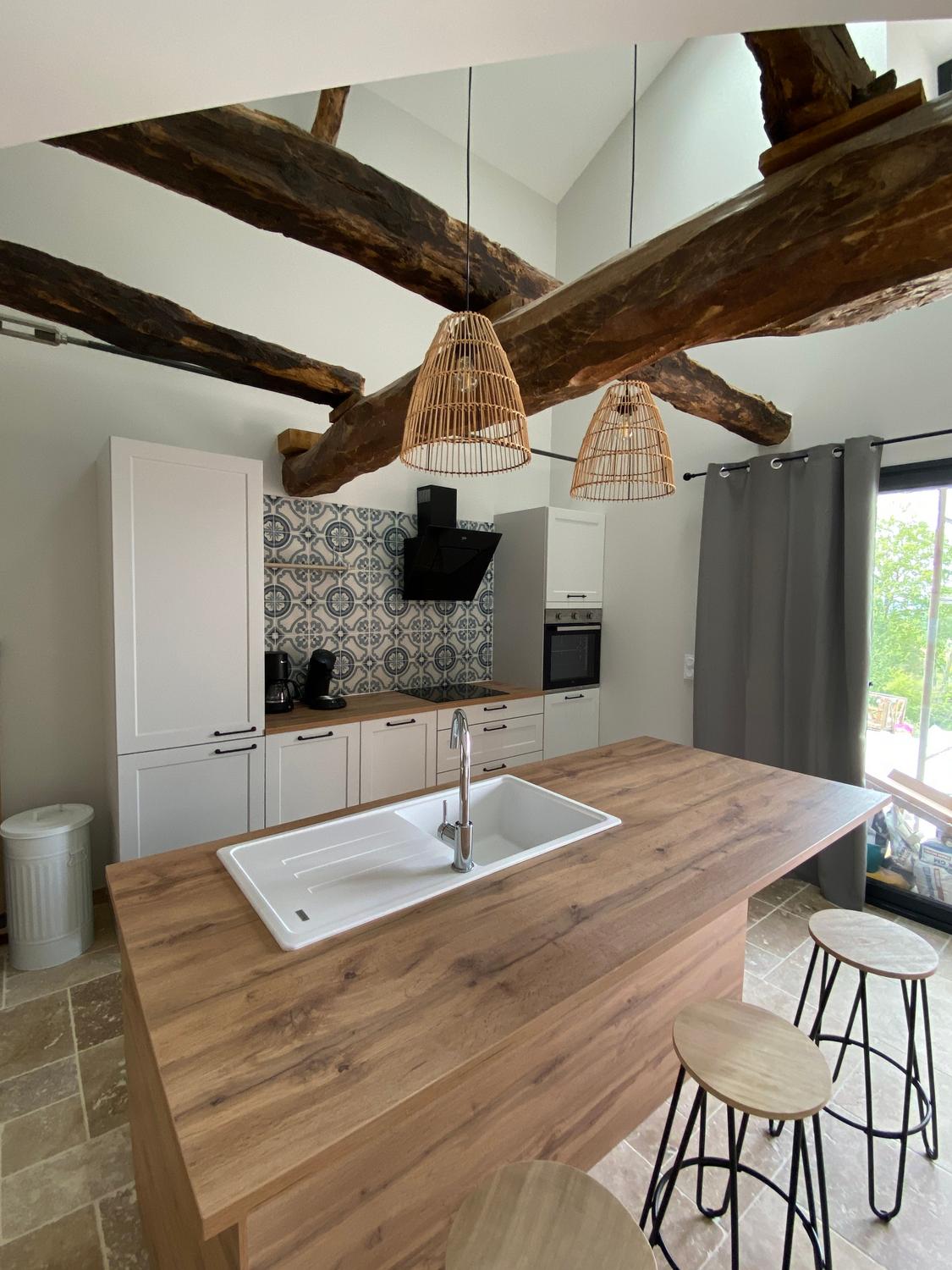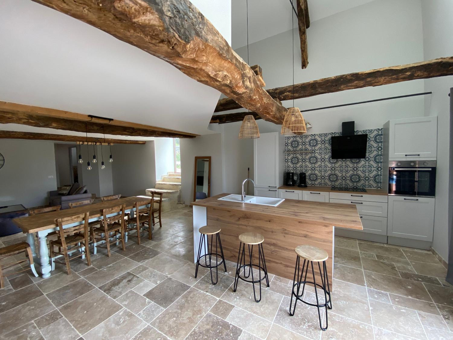 De cette vieille grange, les propriétaires en ont fait un magnifique logement en gardant trace du passé : poutres, vieil escalier en pierre, niveaux différents donnent à ce nouveau gîte un esprit moderne et fonctionnel.