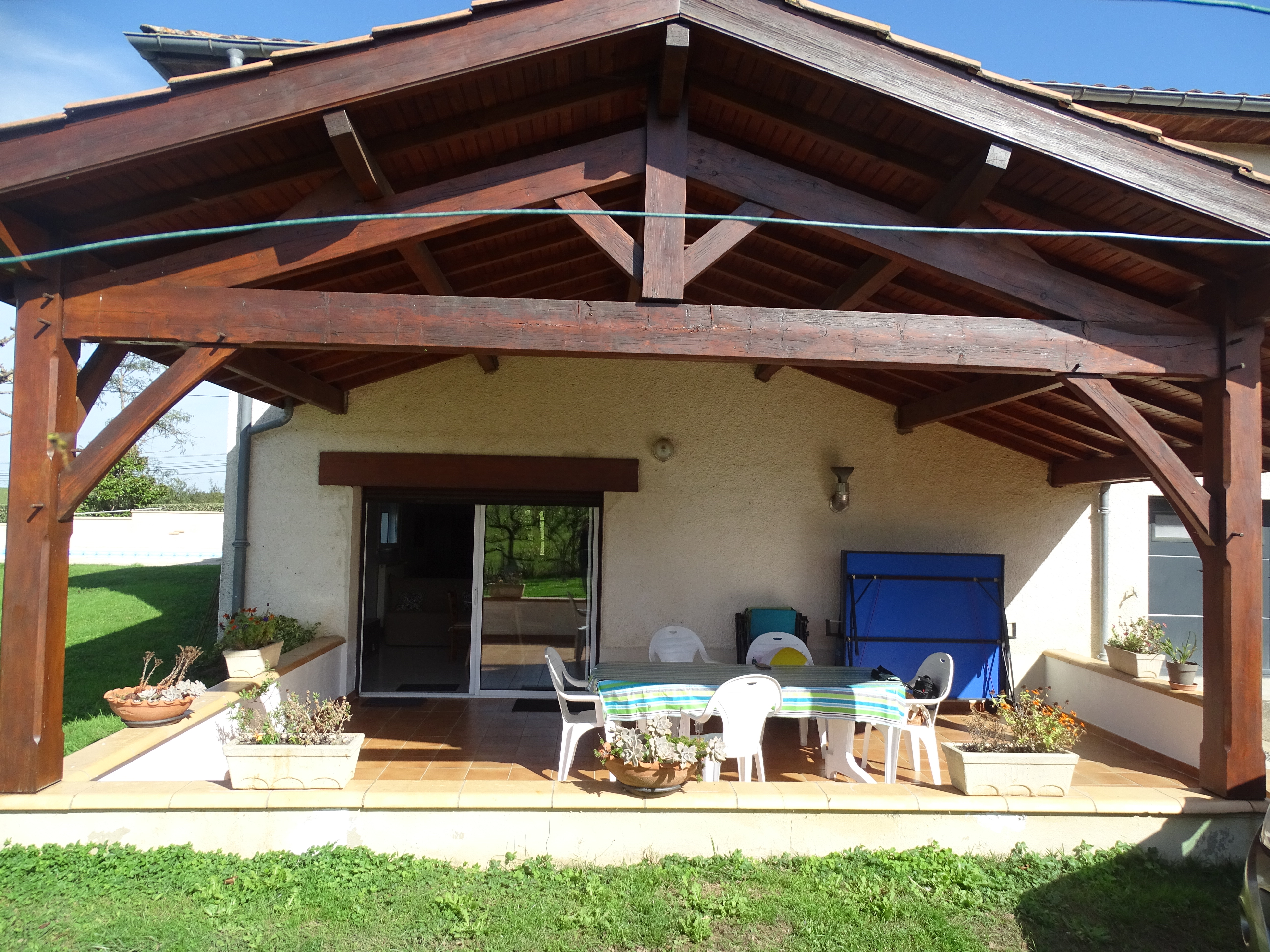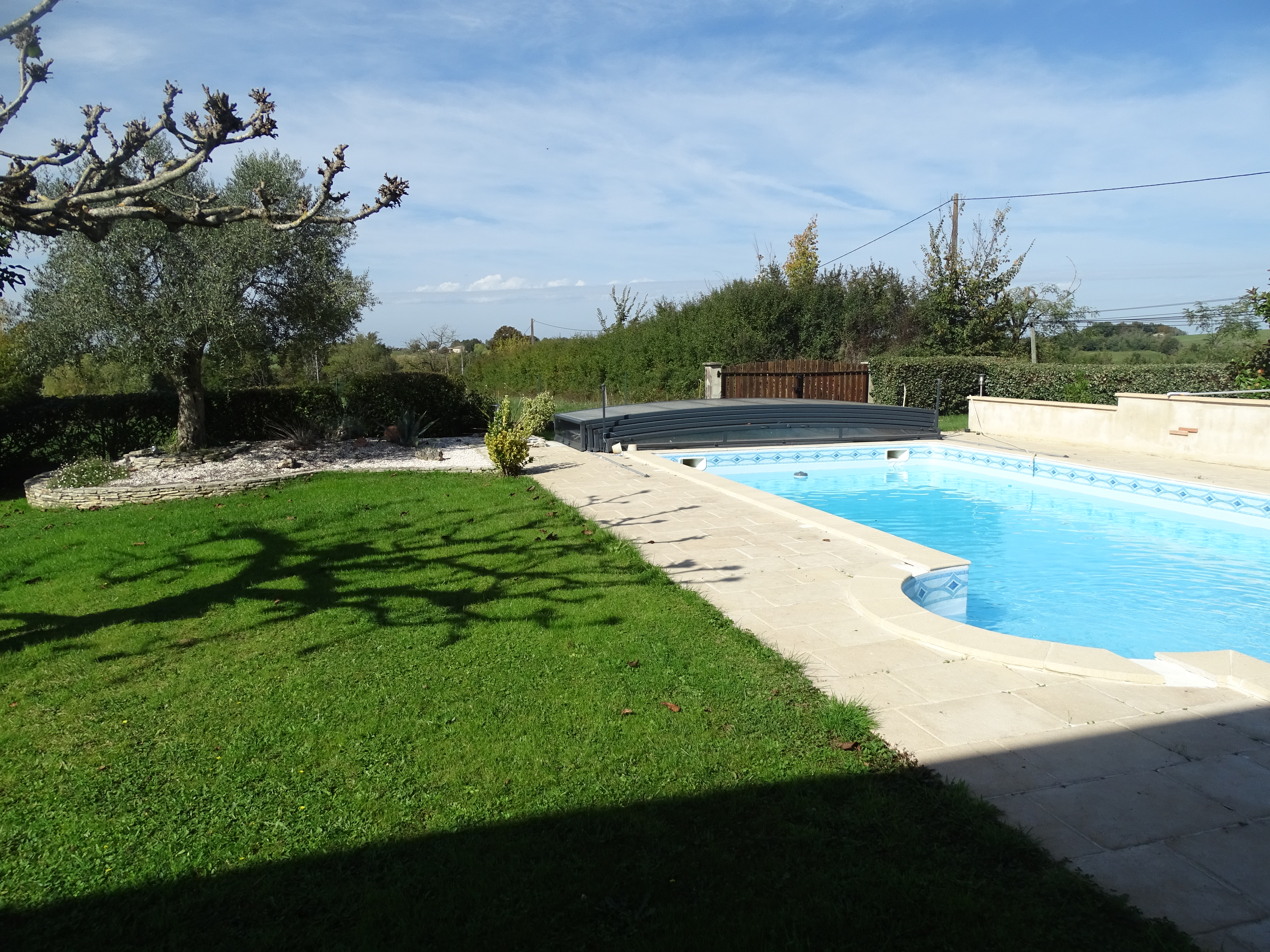 Piscine, terrasse et jardin.