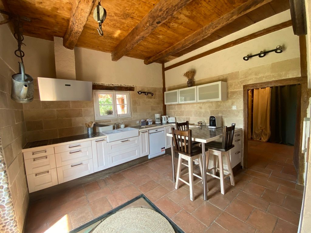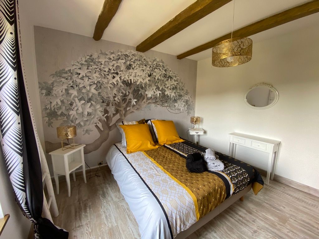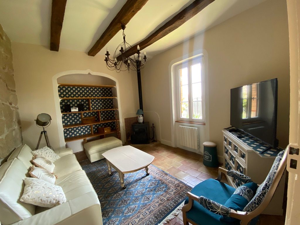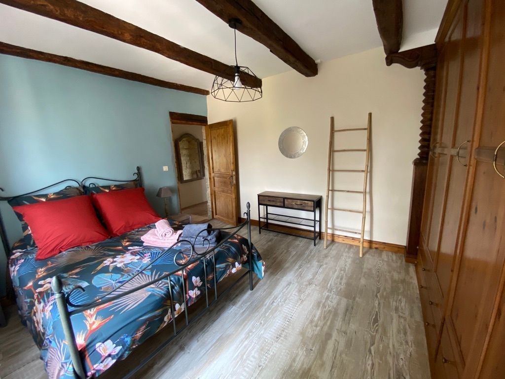 Le logement en rez-de-chaussée comprend une entrée avec un couloir desservant un séjour (poêle bois, table chaises console avec livres, hifi), un salon (canapé, fauteuils TV, poêle), une cuisine (éléments intégrés, lave-vaisselle, four, micro-ondes, plaques, réfrigérateur, congélateur), une buanderie (lave-linge), un wc indépendant. Au 1er étage, deux chambres avec 1 lit 160 chacune), 1 chambre avec 1 lit 140. Une salle d’eau avec wc. A l’extérieur deux terrasses dont une bien ombragée, et une permettant d’accéder au spa. Peignoirs fournis, linge de toilette, de maison et de lit fournis compris dans le prix. Barbecue gaz. Parking privé fermé. Wifi dans tout le logement avec fibre.