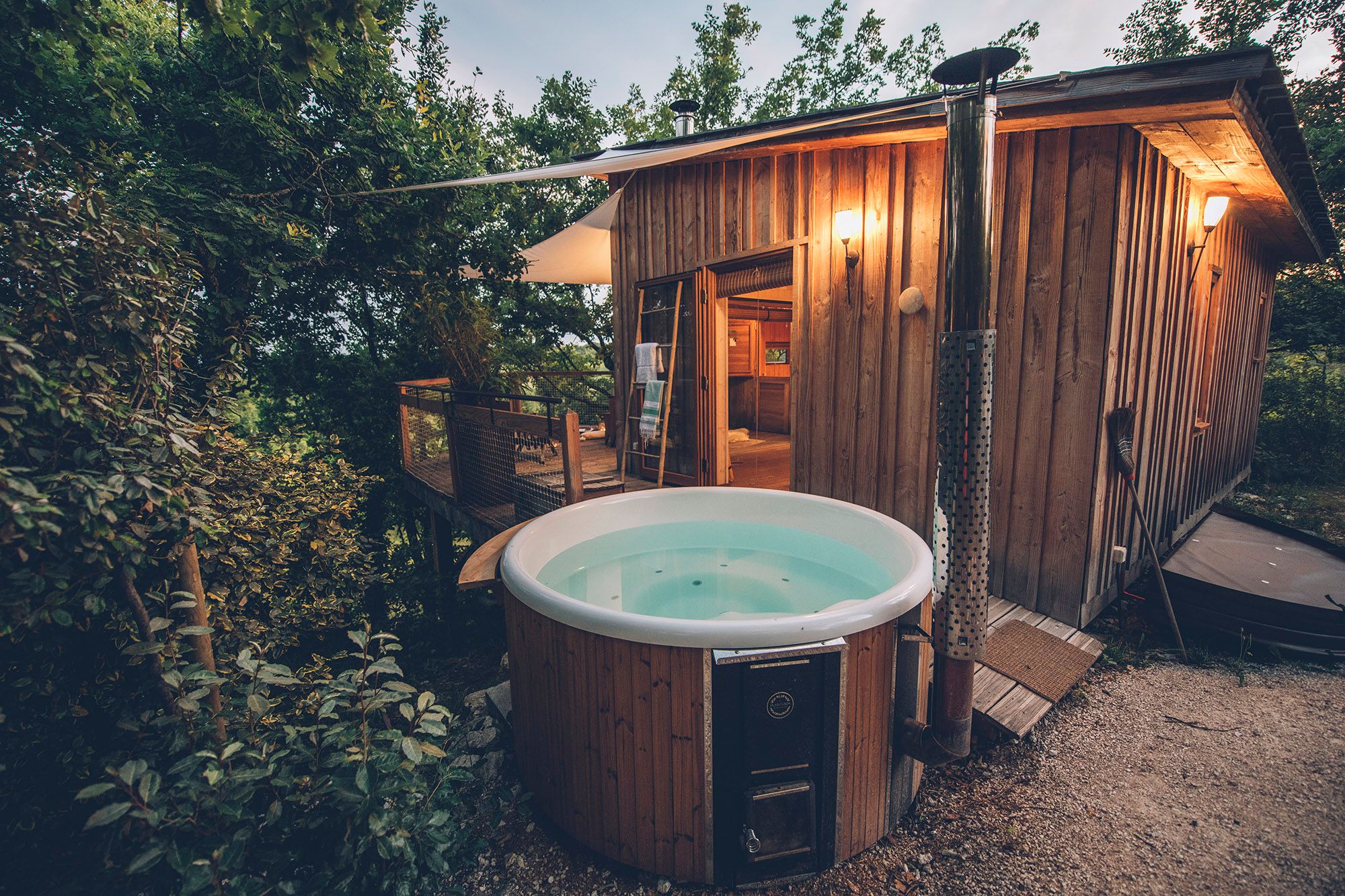 Séjour romantique pour deux dans une cabane avec spa et sauna privatif