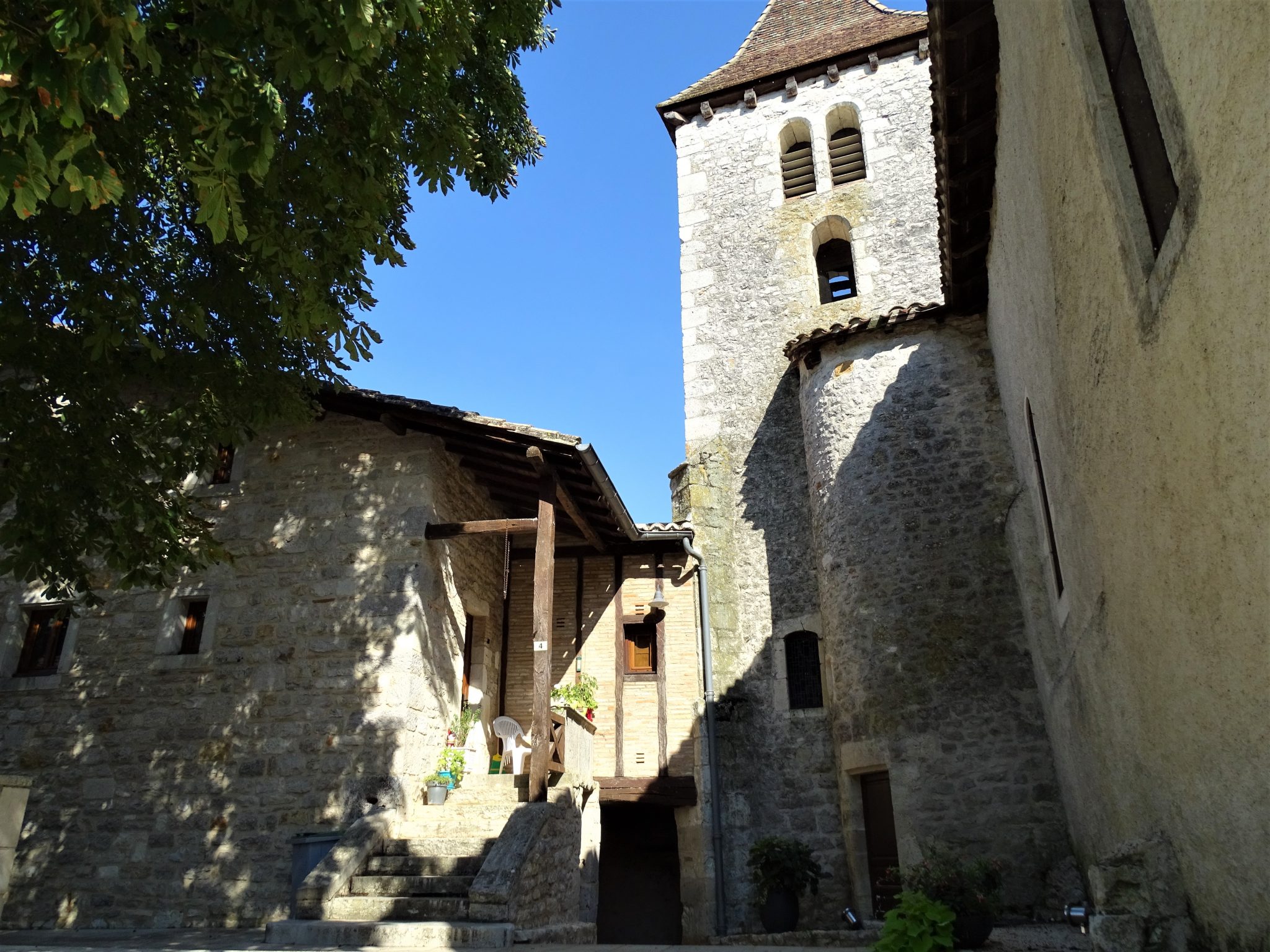 Petit village fleuri entre causses, coteaux et son architecture unique : pierres du Quercy, maisons à colombage et son petit patrimoine : lavoirs, pigeonniers…