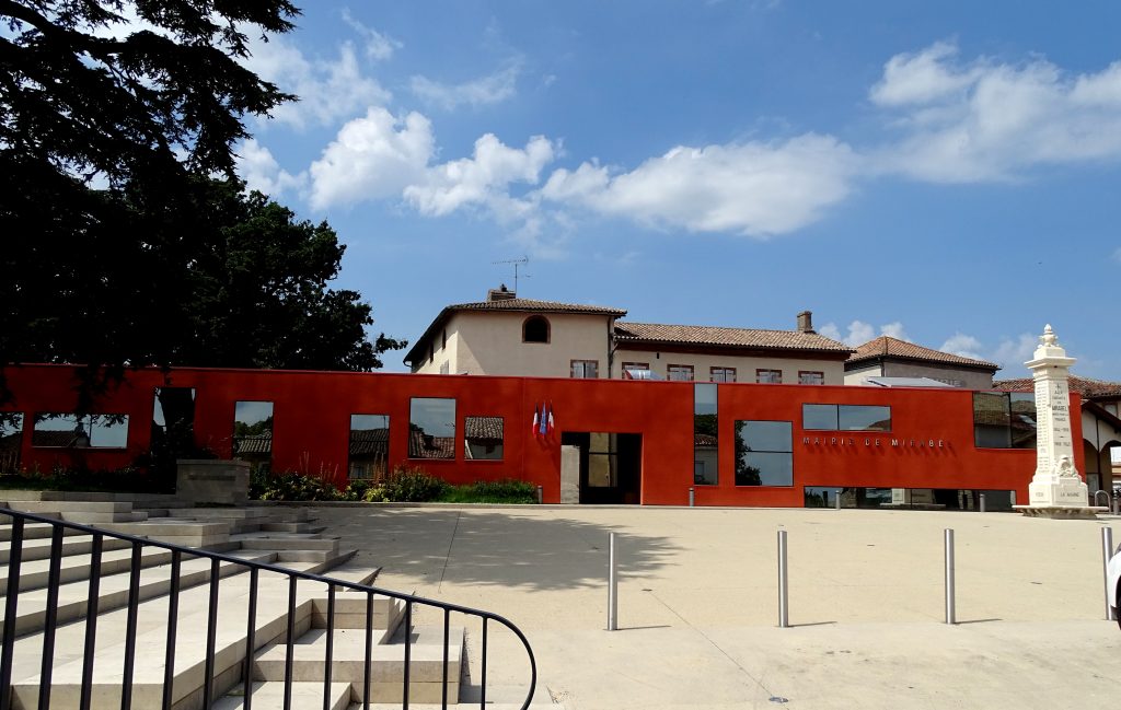 The new town hall, a striking monolith in a strong red that reflects the color of the local Quercy soil, is there to welcome you, an impressive sight. At nightfall, its forecourt lights up most beautifully. (Architect Xavier Leplaë.)
